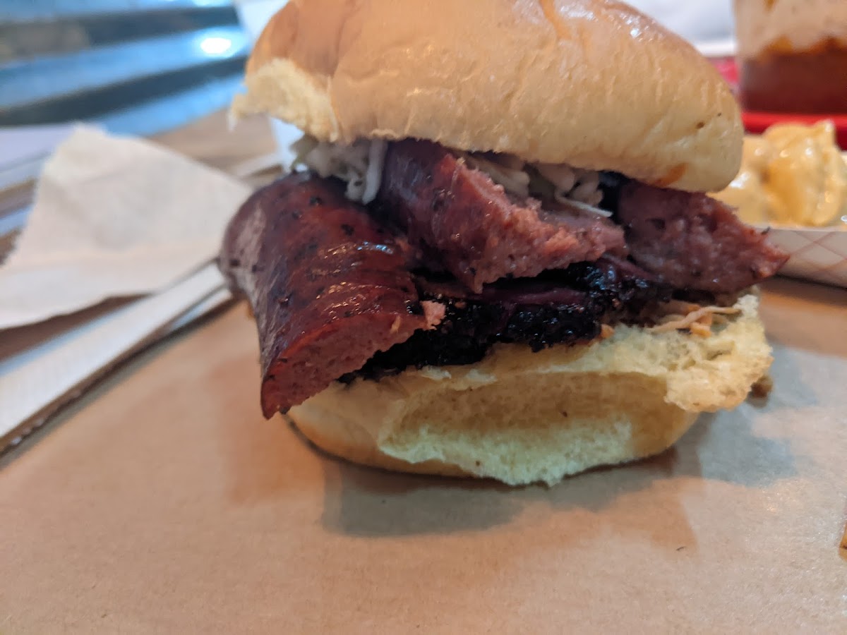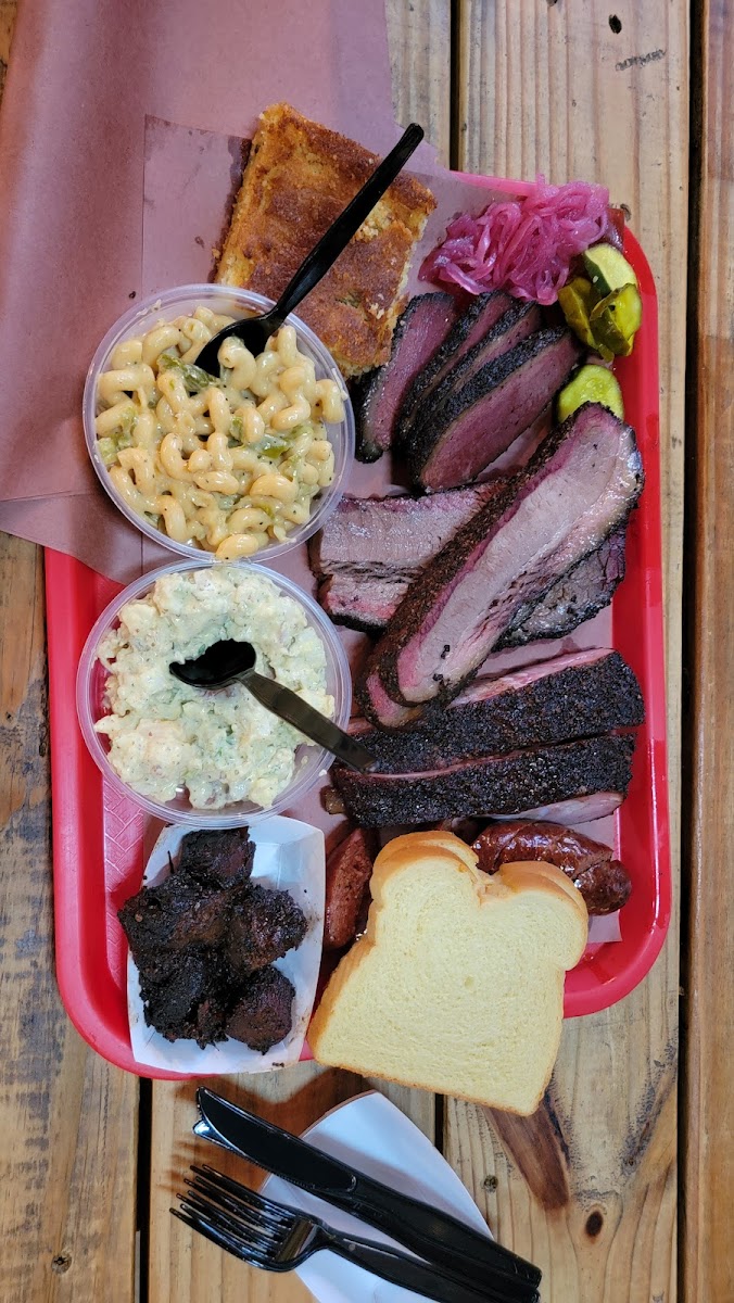 From the service (soooo friendly and welcoming) to the food the experience was 10/10. I would definitely recommend going as a group to get your money's worth. I really enjoyed the sampler they had and I wish I could remember if it was the Texas trinity plate but you can never go wrong with a platter or sampler! The sausage (mild) honestly got us both it was surprisingly AMAZING. I think our favorite side was the Mexican street corn it definitely has a little spice to it!